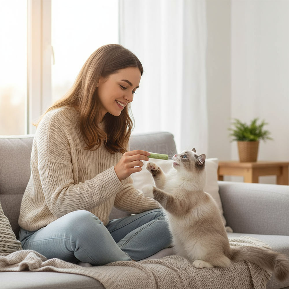 Viele Katzen reagieren sofort, wenn die Packung geöffnet wird. Die Sticks werden schnell Teil der täglichen Routine: als kleine Belohnung nach dem Spielen oder als Ergänzung zum Tagesablauf. Katzen kauen, beschäftigen sich damit und sind ruhig konzentriert. Ein kleines Extra mit klarem Nutzen im Alltag – für Tier und Halter.