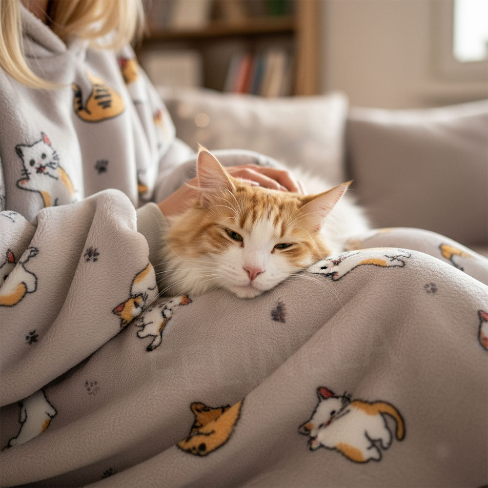 Ist deine Katze auch immer die Erste, die sich den Platz auf der Decke schnappt – und du bleibst frierend daneben sitzen? Mit dem KuschelHoodie LazyCat musst du dir keinen Platz mehr erkämpfen. Er hüllt dich von Kopf bis Fuß ein und bietet gleichzeitig deinem Stubentiger eine weiche, gemütliche Fläche zum Anschmiegen. So entstehen Momente voller Nähe, die ihr beide liebt – du genießt wohltuende Wärme, er seinen Lieblingsplatz ganz dicht bei dir.