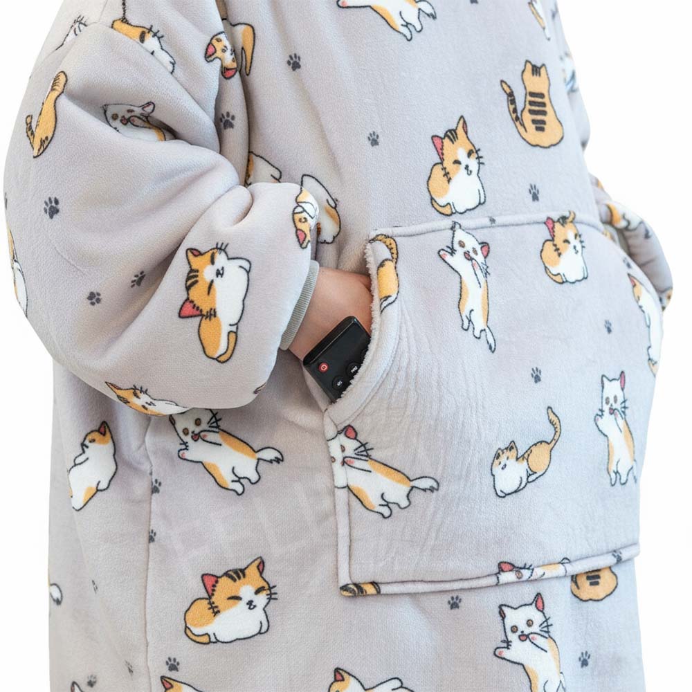 Kennst du das: Du kuschelst dich in eine Decke, willst kurz aufstehen, und schon rutscht sie dir von den Schultern? Ein Bademantel ist oft zu dünn und wenig praktisch. Der LazyCat vereint das Beste aus beiden Welten – er umhüllt dich wie eine Decke, bleibt aber da, wo er hingehört, auch wenn du dich bewegst. So kannst du bequem durch die Wohnung gehen, Tee holen oder mit deiner Katze spielen – Wärme und Komfort begleiten dich überall, ganz ohne Frieren und Nachjustieren.