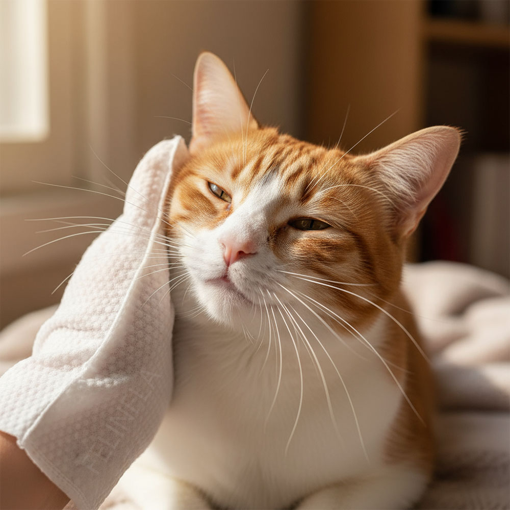 Reinigung ohne Bad – statt Kampf in der Wanne fühlt es sich für die Katze wie Streicheln an.