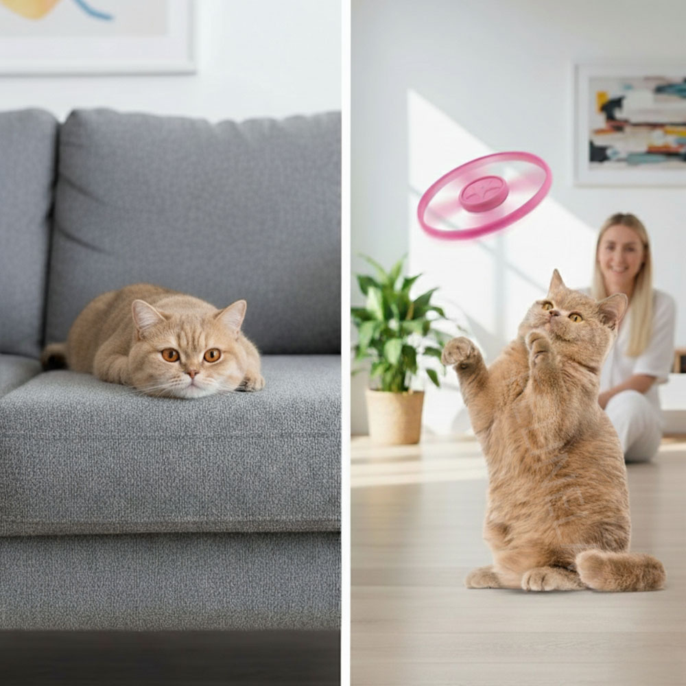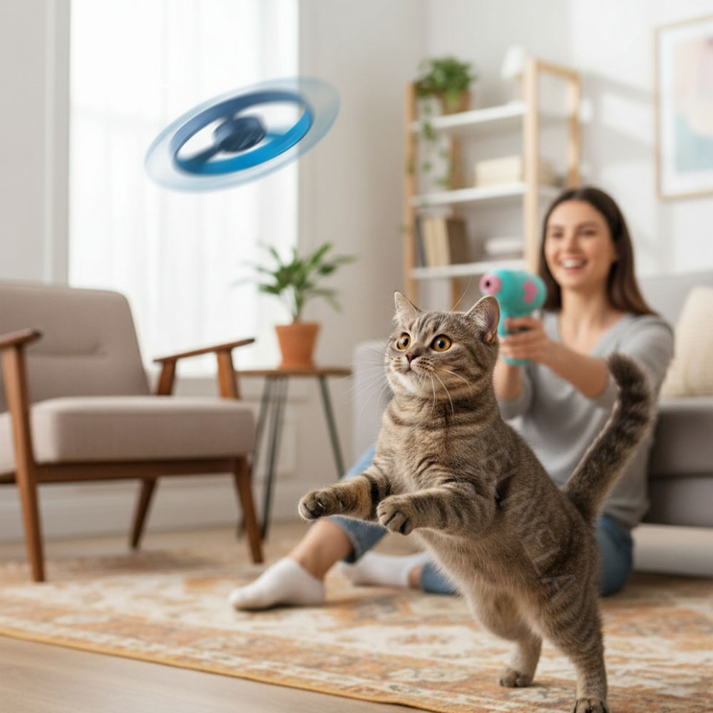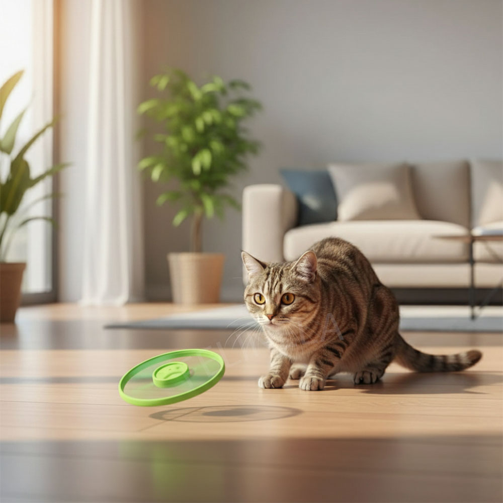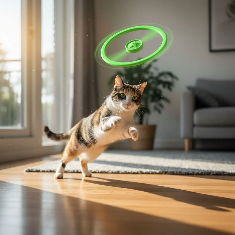Der Scheibenwerfer für Katzen ist ein einfacher Weg, um mehr Aktivität in den Alltag zu bringen. Ein Klick reicht und die Scheibe steigt auf, rotiert stabil und setzt einen klaren Bewegungsreiz. Die Katze reagiert instinktiv auf das Flugobjekt und kommt in Bewegung. Kurze, regelmäßige Spieleinheiten lassen sich problemlos in den Tag integrieren und schaffen eine feste Routine.